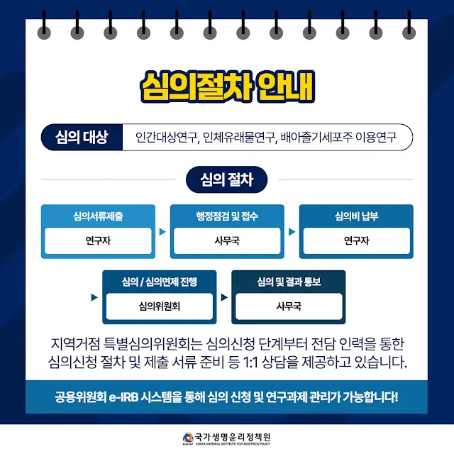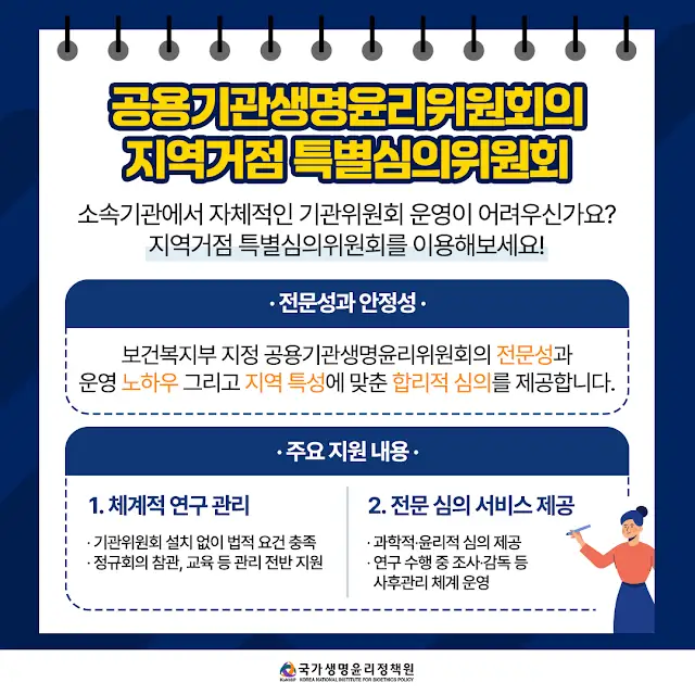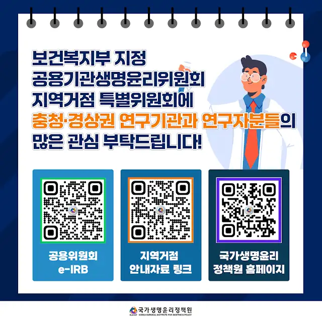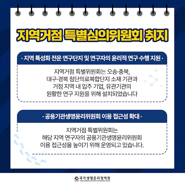 지역 특성화 전문 연구단지 및 연구자의 윤리적 연구 수행을 위해 공용기관생명윤리위원회가 운영하는 지역거점 특별심의위원회를 소개합니다